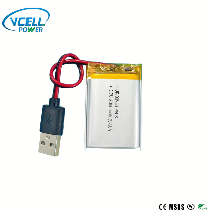 Deze 3,7 V 2000 mAh 103450 Li-polymeerbatterij van VCELL POWER heeft een hoge energiedichtheid, een laag gewicht, draagbaarheid en een lange levensduur. Het biedt een capaciteit van 2000 mAh in een compact formaat en biedt een stabiele en langdurige stroomuitvoer voor uw apparaten. Het is een ideale keuze om te voldoen aan de langdurige stroomvoorzieningsvereisten van draagbare producten.